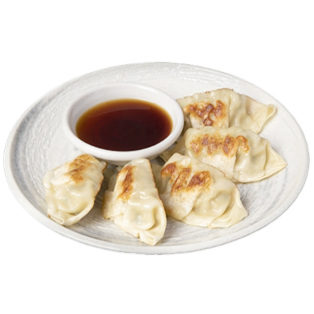 Empanadillas japonesas rellenas de carne de cerdo, cebollino, jengibre y ajo, servidas con salsa de soja. (6 uds.)
